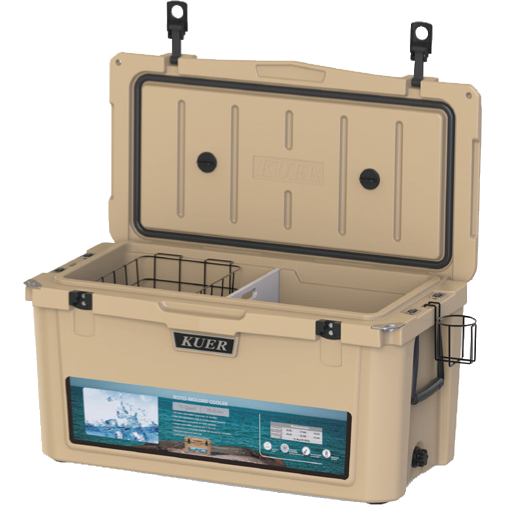 2016款有10/20/45/60/75qt, 70/110qt带轮子。它比2015款多了一个开瓶器。取消箱盖顶部的杯托位置,定制logo将移到箱盖的中间,整体更加圆润。